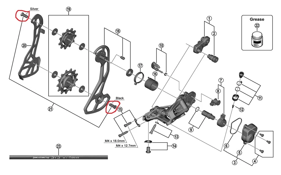 Lieferumfang: 2 Stk. Shimano GRX RD-RX810/RX812 Schaltwerkrädchen-Schrauben