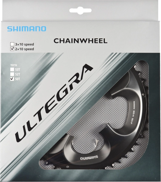 Shimano Ultegra Kettenblatt für die FC-6750 50 Zähne 2×10-fach Kompakt-Kurbelgarnitur mit einem Lochkreis von 110 mm.