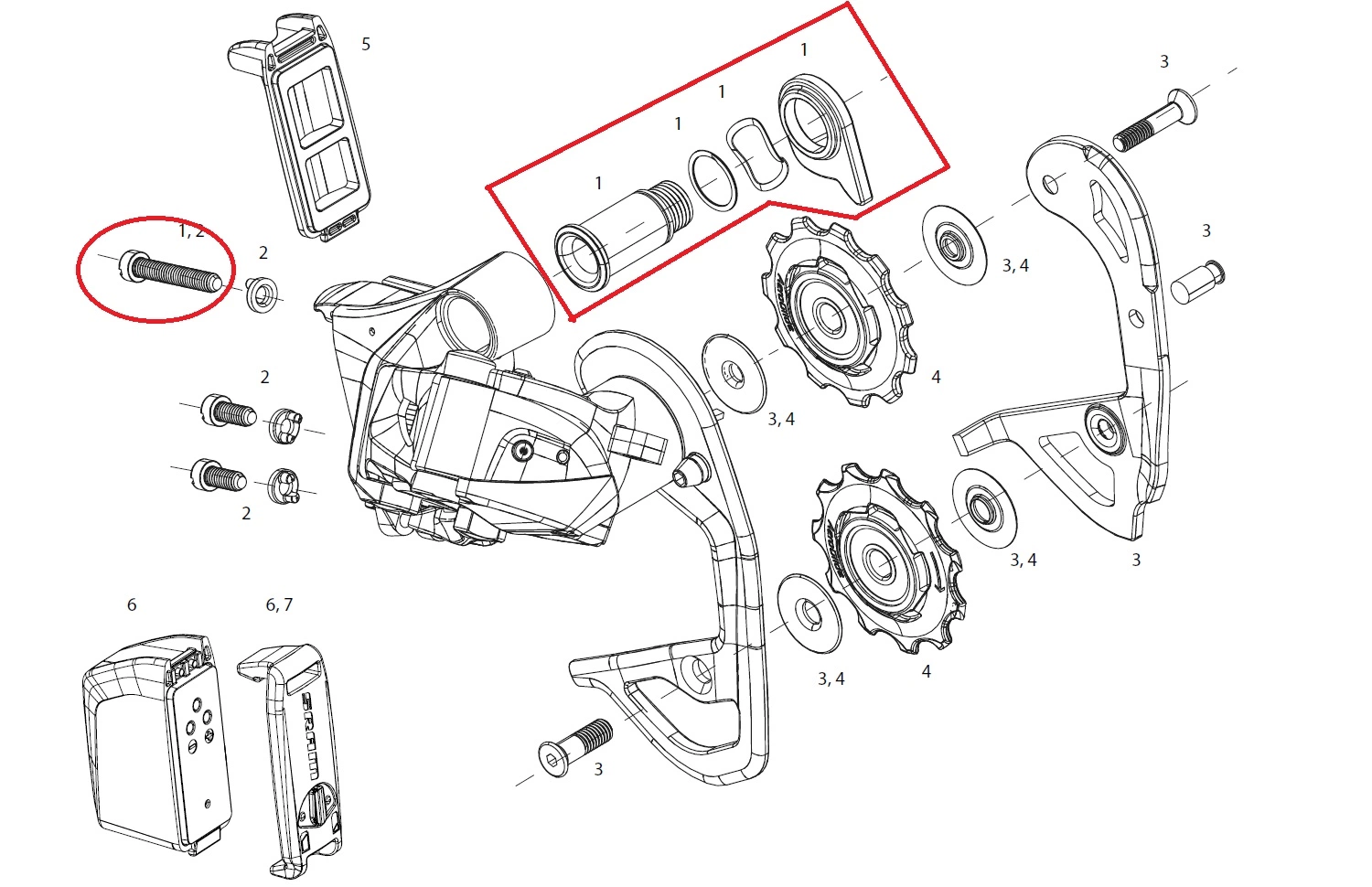 Sram Red eTap Schaltwerk-B-Bolt/B-Screw Kit.