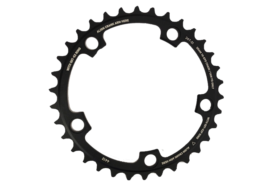 34 Zähne Kettenblatt passend zur Sram Red Exogram 2×10-fach Kompakt-Kurbelgarnitur mit einem Lochkreis von 110mm.